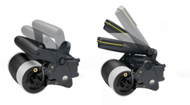 Тип преобразователя: Роликовый преобразователь с фазированной решёткой, предназначенный для неразрушающего ультразвукового контроля (УЗК) больших поверхностей без применения геля или воды.
